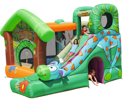 Dies ist eine große Hüpfburg mit einer langen Rutsche und