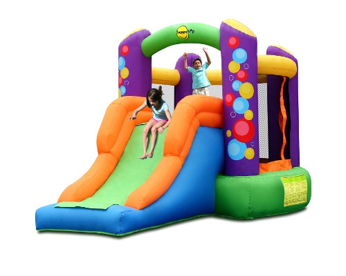 Dies ist eine Hüpfburg mit einer großen Rutsche und