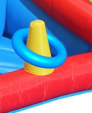 Dies ist eine Hüpfburg mit einer großen und einer kleinen Rutsche