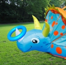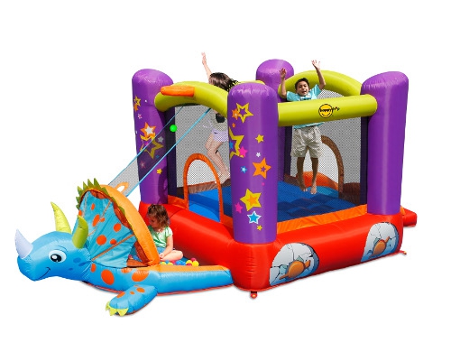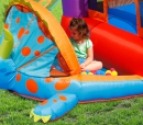 Dies ist eine Hüpfburg mit einer kleinen Rutsche und