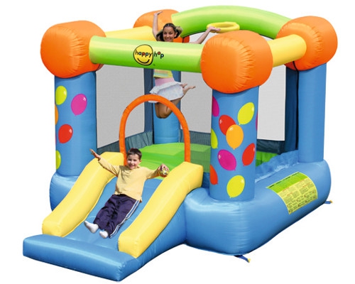 Dies ist eine Hüpfburg mit einer kleinen Rutsche und