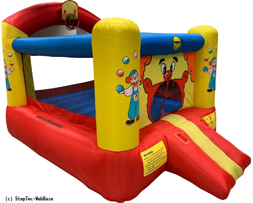 Dies ist eine Hüpfburg mit einer kleinen Rutsche und