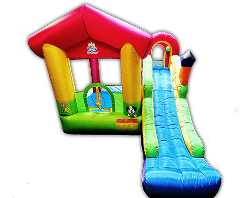 Dies ist eine Hüpfburg mit einer großen und einer kleinen Rutsche