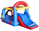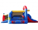 Dies ist eine Hüpfburg mit einer Rutsche auf jeder Seite und